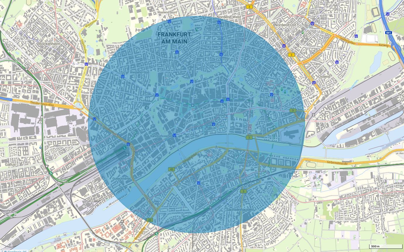 Am 15. Februar 2026 ist zwischen 10:00 Uhr (MEZ) und 19:30 (MEZ) der Drohnenbetrieb wegen eines polizeilichen Einsatzes in Frankfurt (Main) eingeschränkt. In diesem Gebiet gelten die Vorgaben für geografische Gebiete gemäß § 21h Absatz 3 Nummer 11 Luftverkehrs-Ordnung.