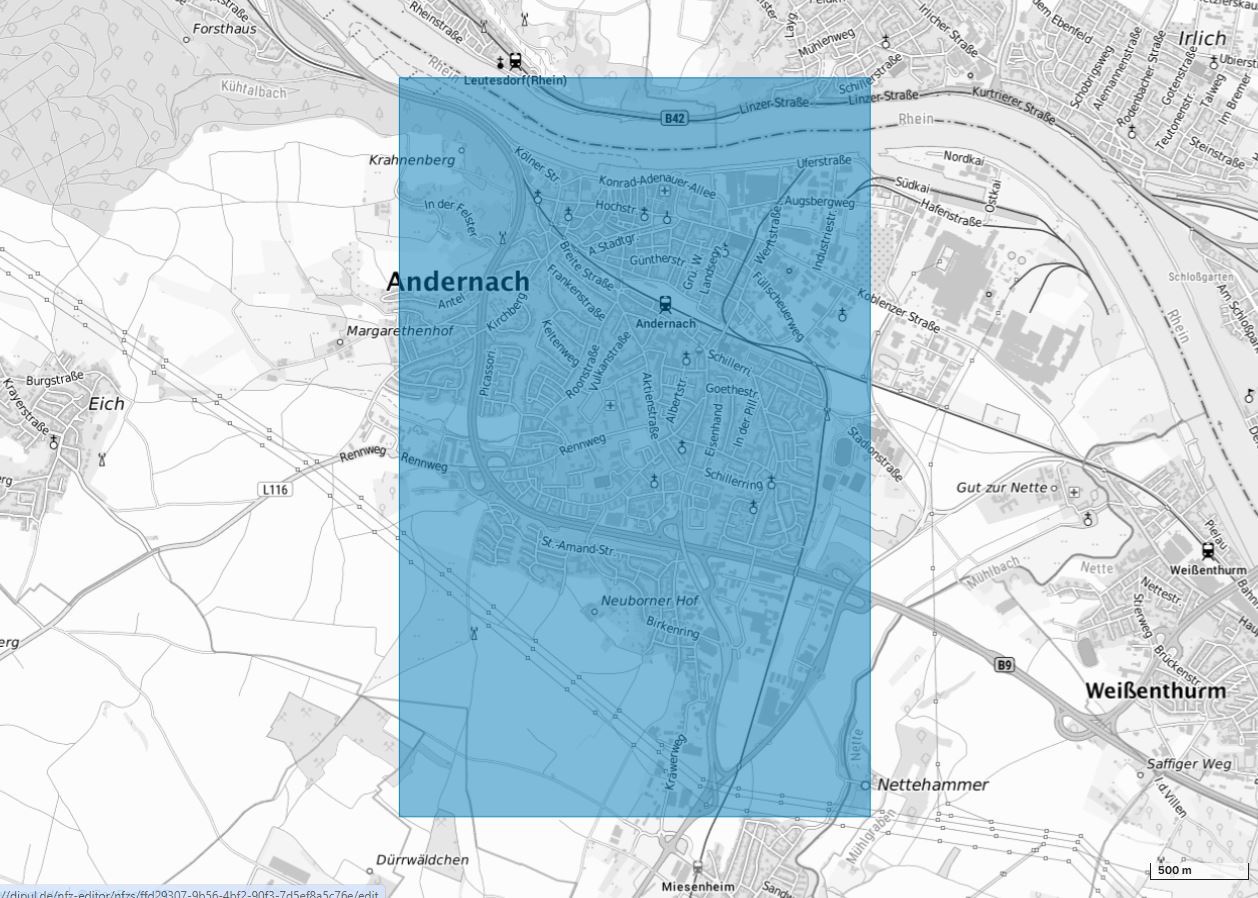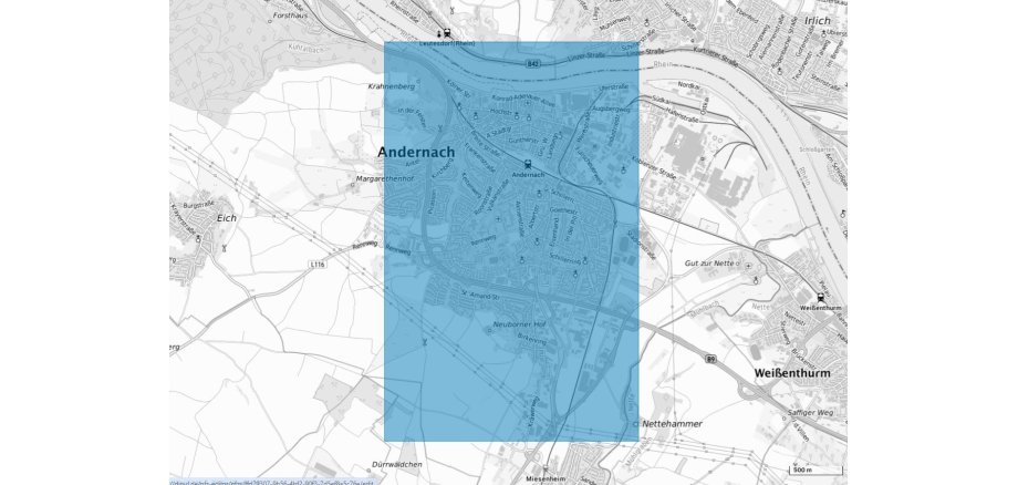 Am 16. Oktober 2025 von 06:00 Uhr (MESZ) bis 16:00 Uhr (MESZ) Uhr ist der Drohnenbetrieb wegen eines polizeilichen Einsatzes bei Andernach eingeschränkt. In diesem Gebiet gelten die Vorgaben für geografische Gebiete gemäß § 21h Absatz 3 Nummer 11 Luftverkehrs-Ordnung.