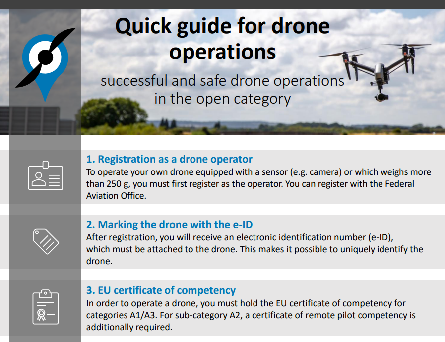 01/09/2022 Quick guide for drone operations01/09/2022Zusammenfassung notwendiger Schritte für neue Drohnenpiloten in der offenen KategorieMore